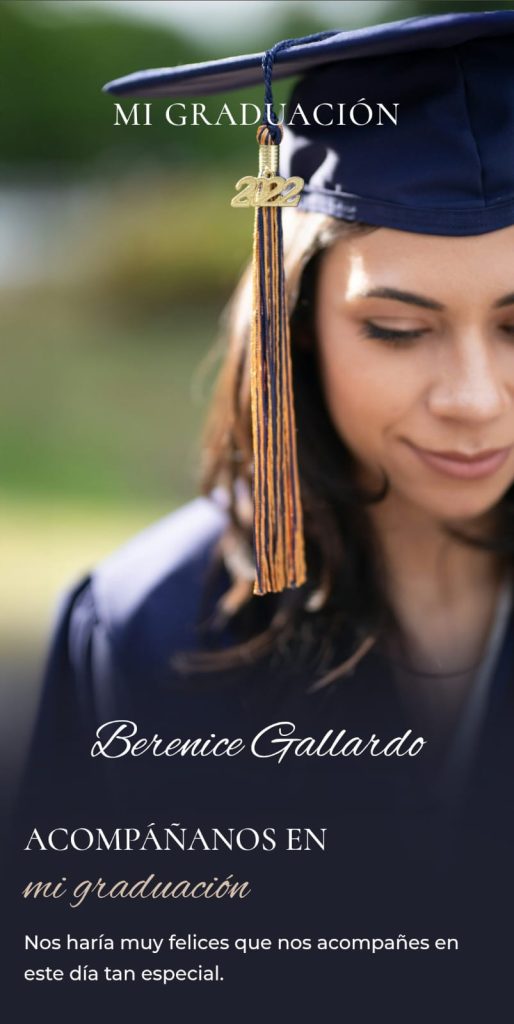 Para los graduados que quieren hacer una declaración audaz. Colores intensos, contrastes marcados y un carrusel de fotos.